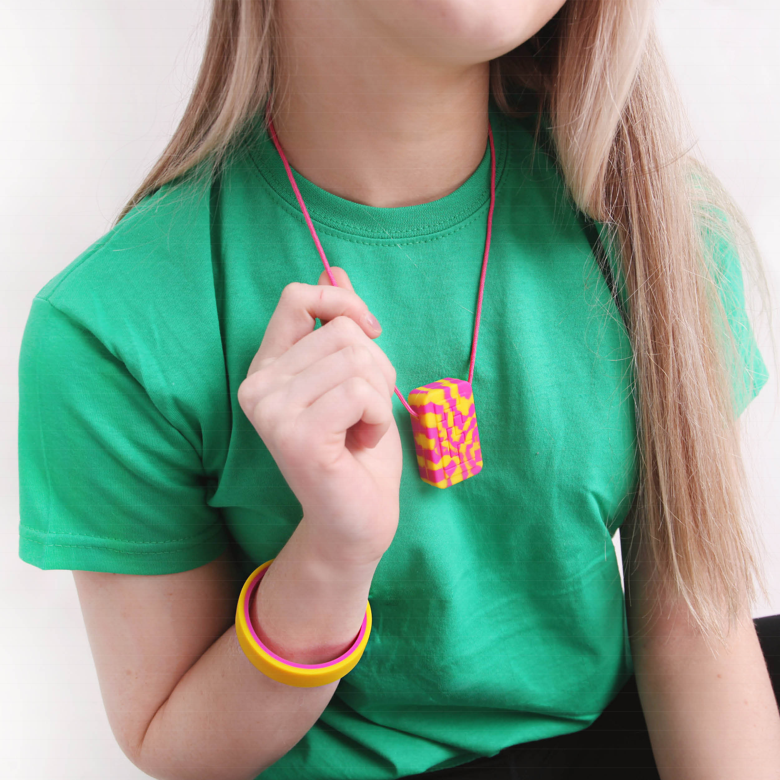 Šnúrka nie je vhodná na žuvanie, preto pre deti, pri ktorých je predpoklad, že by mohli žuť aj šnúrku, je vhodnejšie zvoliť žuvaciu pomôcku do ruky alebo v podobe náramku.