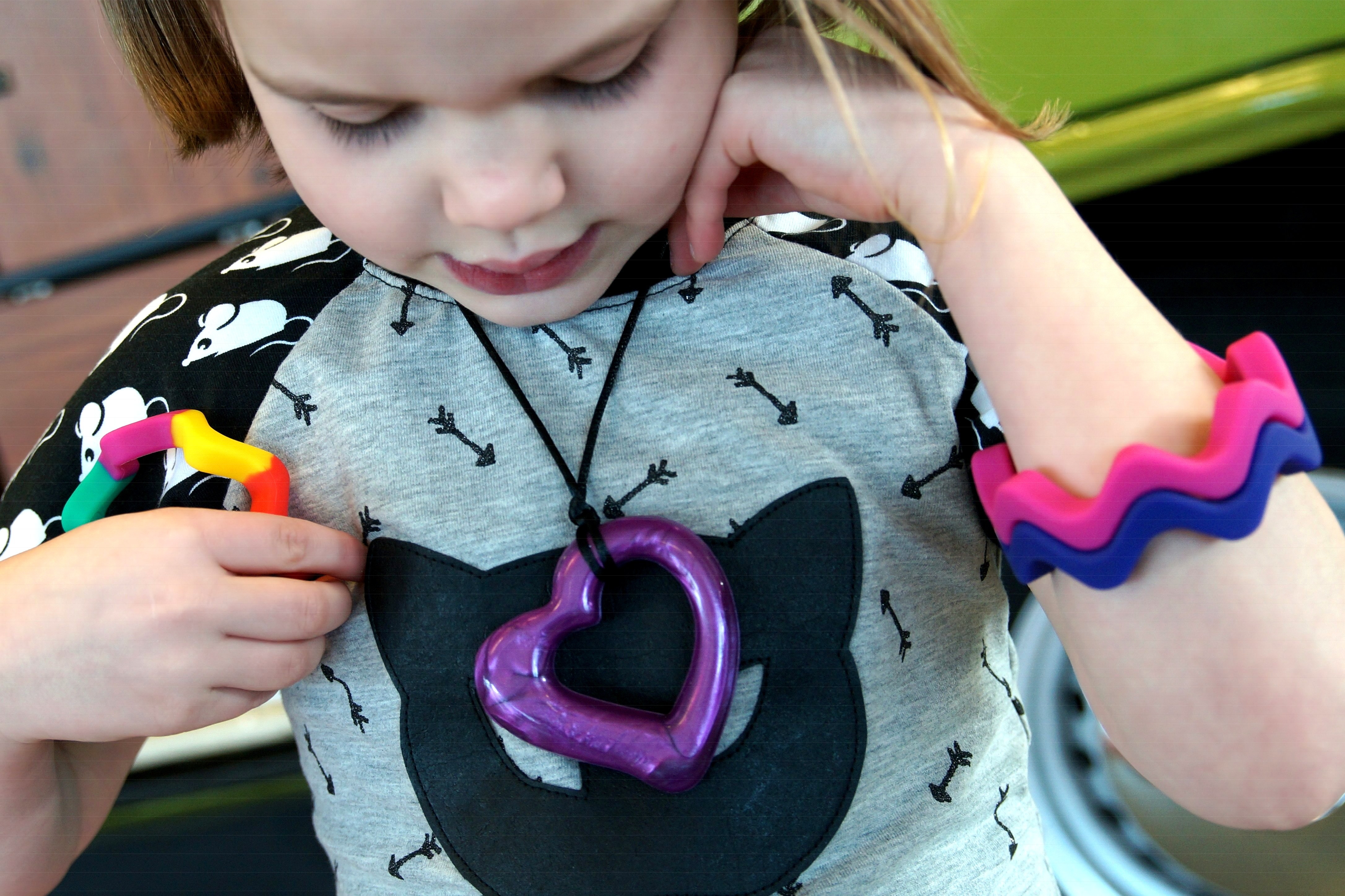 Šnúrka nie je vhodná na žuvanie, preto pre deti, pri ktorých je predpoklad, že by mohli žuť aj šnúrku, je vhodnejšie zvoliť žuvaciu pomôcku do ruky alebo v podobe náramku.