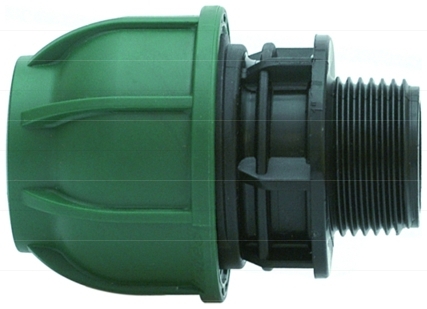 Mechanická spojka s vonkajším závitom na spájanie PE potrubia. Jednoduchá montáž - stačí povoliť objímku a vsunúť koniec potrubia.